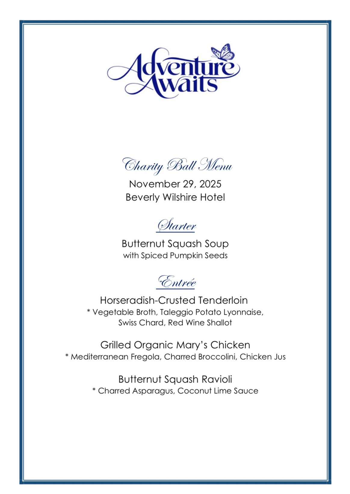 Charity Ball Menu